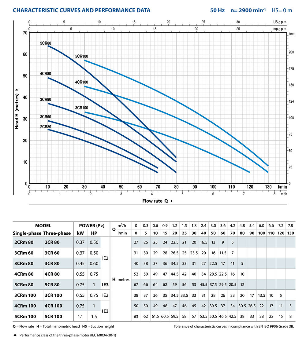 Single Phase: 2CRm80 | 3CRm60 | 3CRm80 | 4CRm80 | 3CRm100 | 4CRm100 | 5CRm80 | 5CRm100