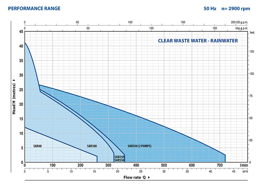 Flow rate up to 180 l/min (10.8m³/h) Head up to 8m
